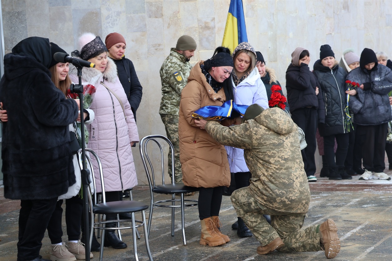 Южноукраїнці проводжали Героя в останню дорогу з усіма військовими почестями, стоячи на колінах зі сльозами на очах. Слова співчуття рідним та близьким висловили заступниця міського голови Марія Дроздова та головний сержант роти охорони першого відділу Вознесенського районного територіального центру комплектування та соціальної підтримки Андрій Медведєв.