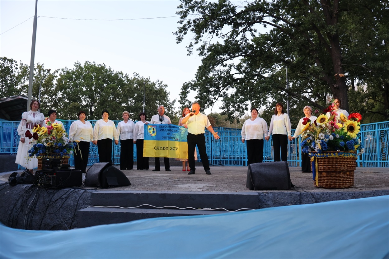 На локації «Клітка» о 18:00 розпочалася патріотично-концертна програма. Сцена об’єднала різні покоління артистів. Для містян співали: заслужений працівник культури Анатолій Волошин, аматорський вокальний гурт «Колежанки» з Панкратівського клубу, солісти і солістки міського центру культури та дозвілля – Юрій Артюхов, Ірина Полишвайкко, Олена Ланцева, Тетяна Таворська та Яна Бровар, а також юна зірка Анастасія Бєлібова. Звучали пісні різних років незалежності: від 1991-го до сучасності, які змушували багатьох підспівувати.