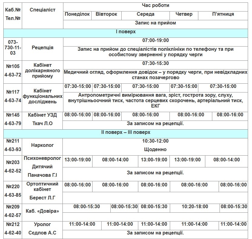 Телефони реєстратури: (067)512 42 42, (05136) 5 58 88, (05136) 4 64 30