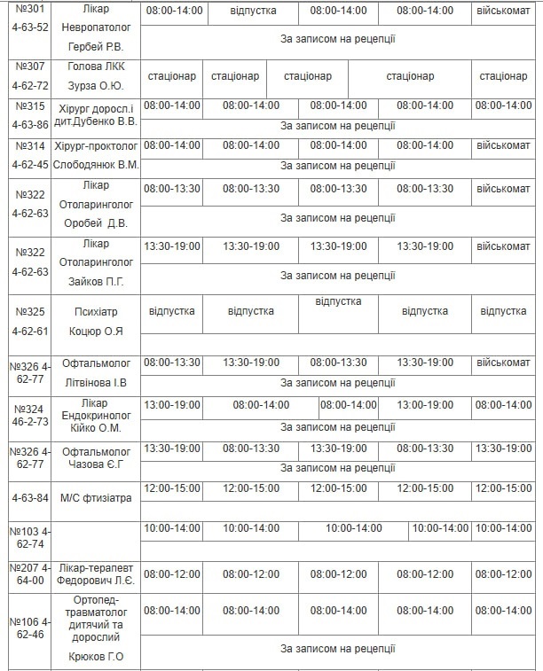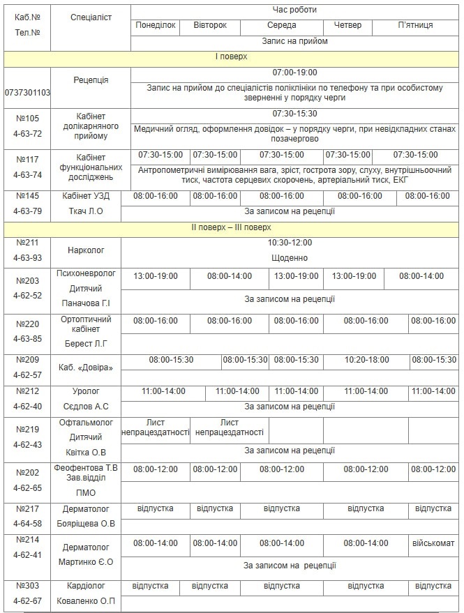 Телефони реєстратури: (067)512 42 42, (05136) 5 58 88, (05136) 4 64 30