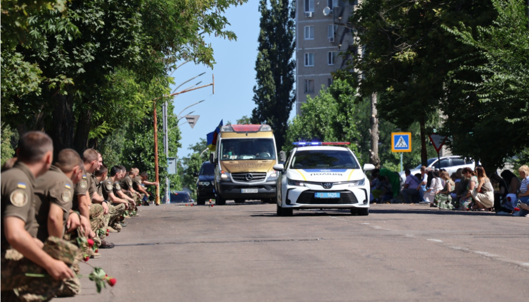 Через п’ять днів, 9 липня, громада Южноукраїнська проводжала свого героя живим коридором на колінах.