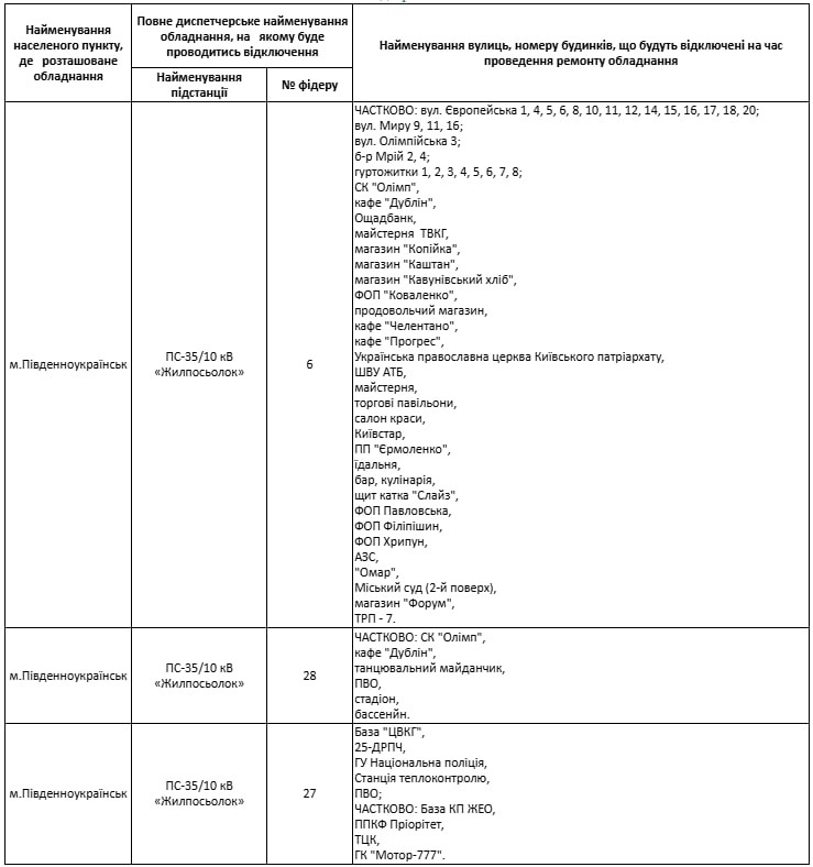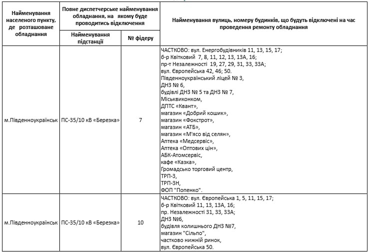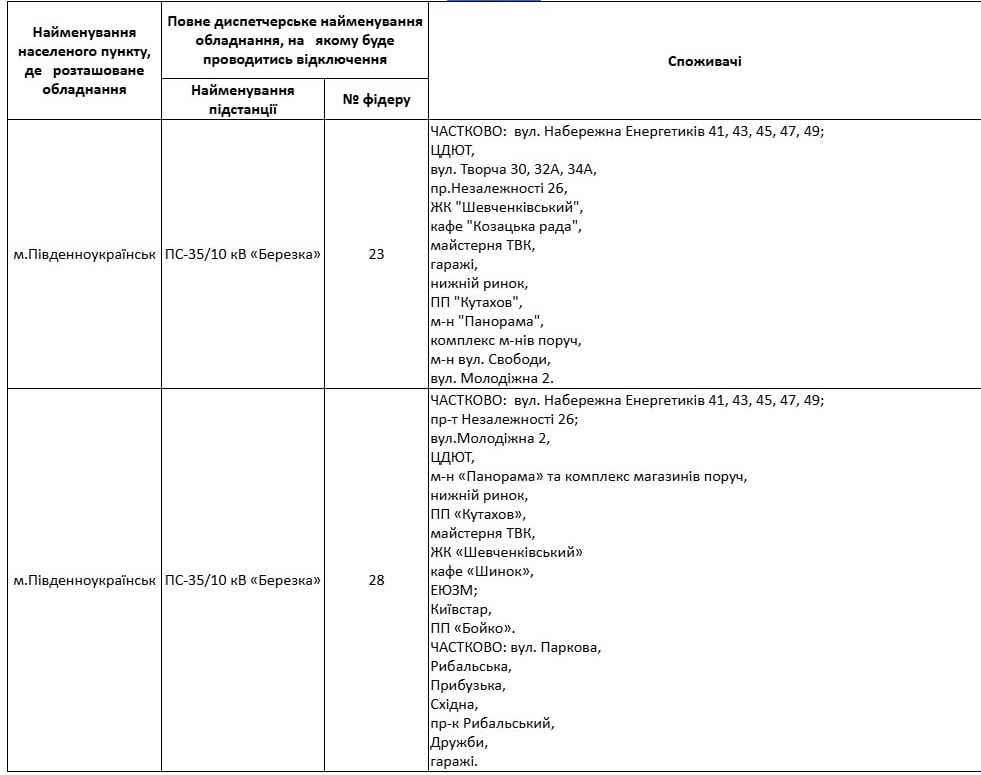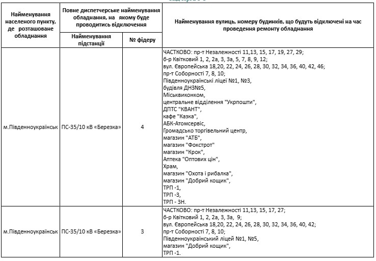 У Південноукраїнську вже діють графіки погодинних відключень електроенергії. Між вимкненнями завжди мінімум 3,5 години зі світлом, а точний час і адреси відключень можна перевірити на сайті ДПЕМ ПрАТ «Атомсервіс».
