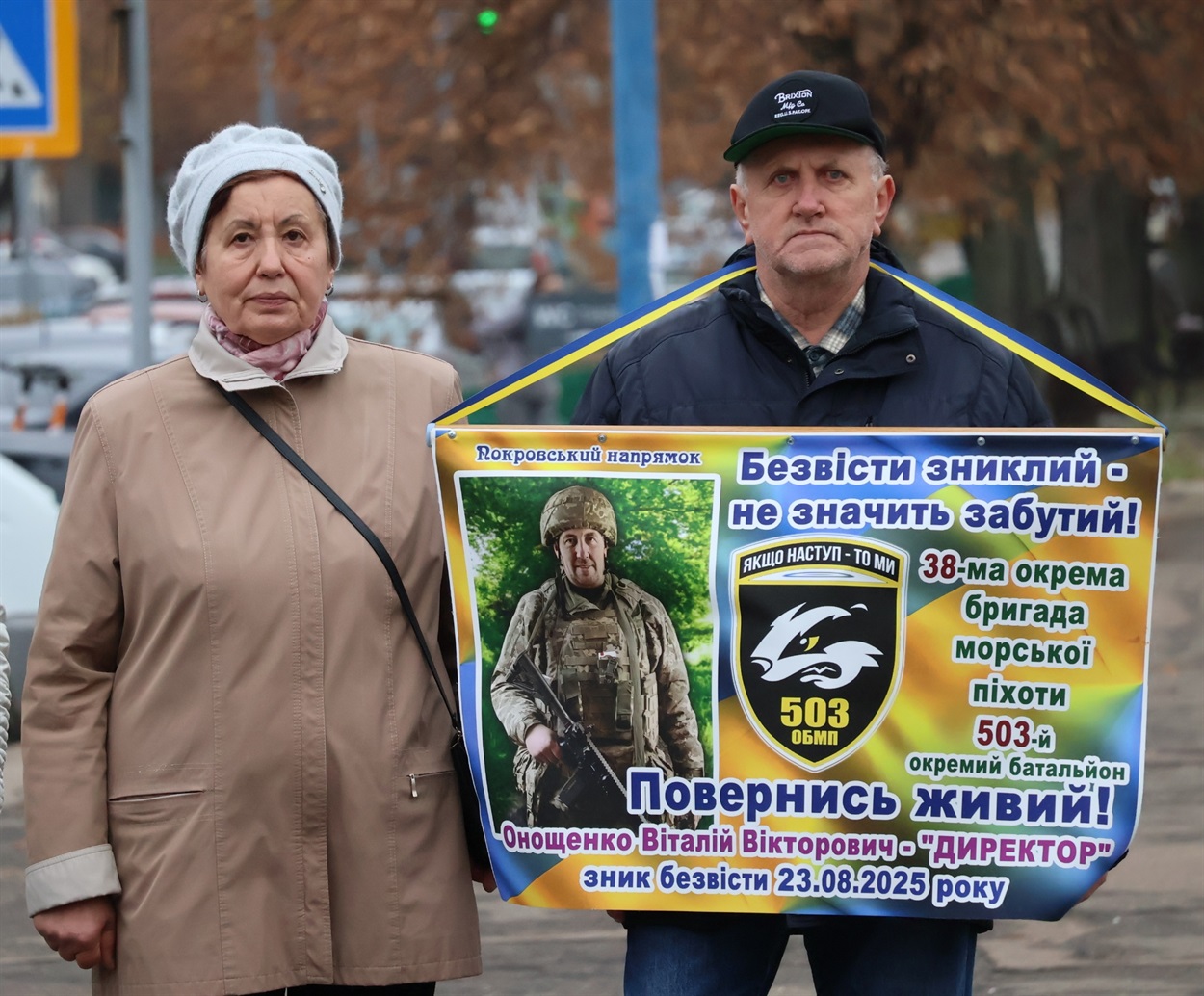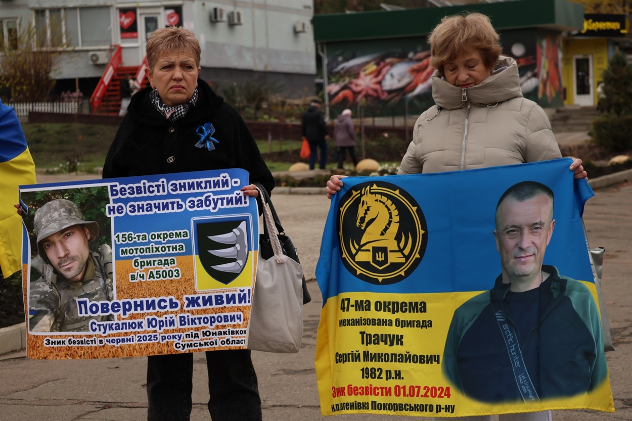 О дев’ятій ранку рідні зниклих і полонених захисників вийшли на проспект Незалежності. Вони перекрили дорогу з плакатами із закликом «Зупинись! Вшануй пам’ять героїв!», і рух на мить зупинився. Під рівний стукіт метронома місто ніби завмирає, щоб згадати тих, хто не повернувся з фронту, і тих, про кого досі немає жодної звістки.