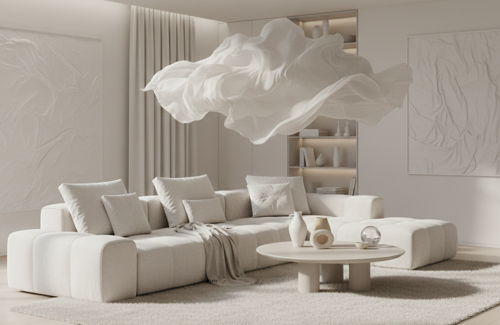 Cloud Dancer створює відчуття простору, легкості та гармонії. Це відтінок, який поєднує функцію й емоцію, формуючи атмосферу спокою - як у предметах інтер’єру, так і в дизайні продуктів чи моді. Він є універсальною основою, що підсилює інші кольори, дозволяє їм розкриватися та формує виразні композиції.