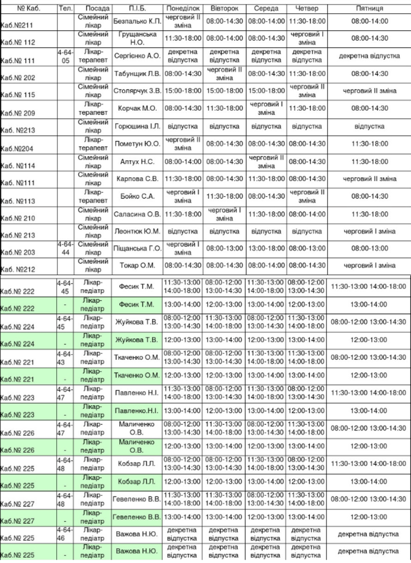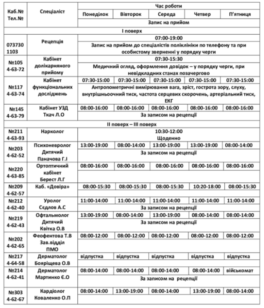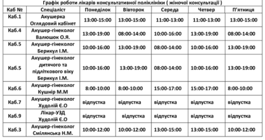 Графік роботи консультативної полікілініки з 8.12.2025 по 12.12.2025