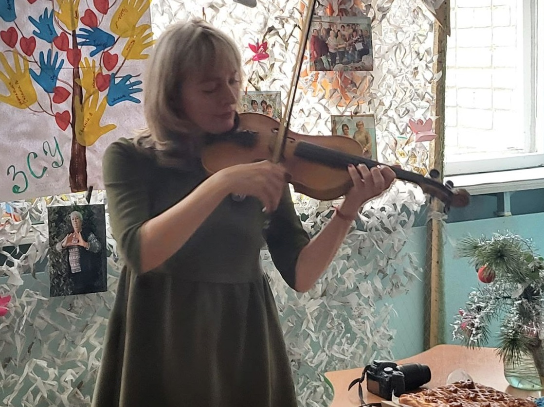 Зворушливі мелодії для спільноти виконала на скрипці волонтерка Євгенія Томіліна