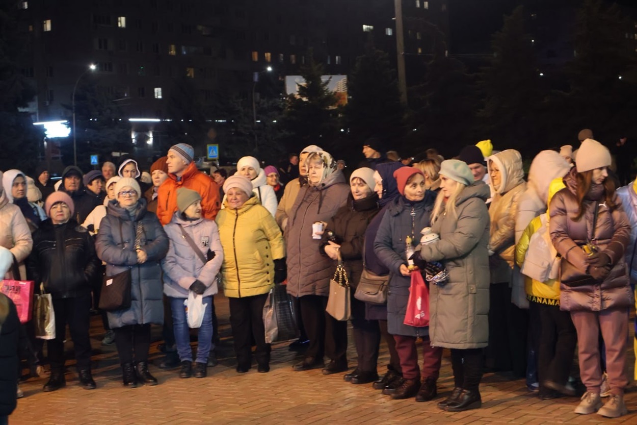 Люди прийшли з лампадками та свічками. Хто не взяв з собою, мав можливість за донат придбати свічечки, які заздалегідь виготовили діти з південноукраїнського осередку скаутської організації «Пласт». За виручені кошти придбають корм та безпритульних тварин.