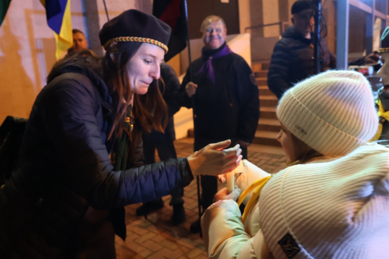 Після цього пані Ольга поділилася вогнем миру з присутніми. На площі дуже швидко замигкотіли сотні вогників від лампадок і свічок.