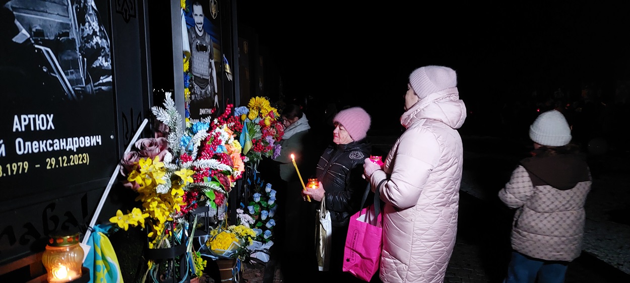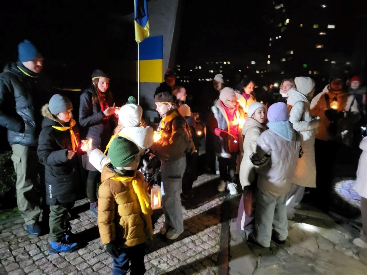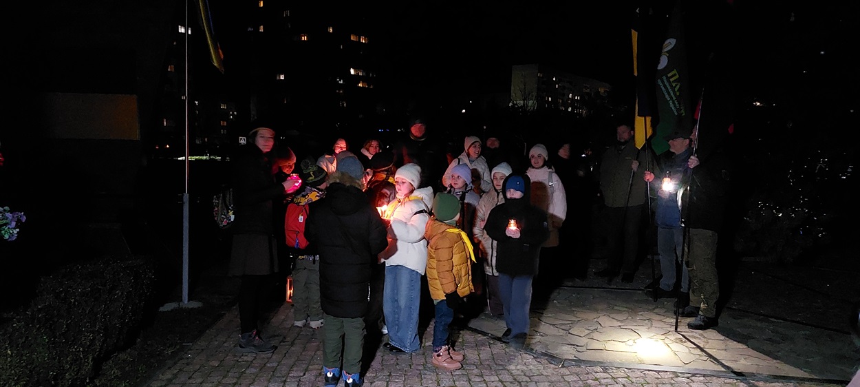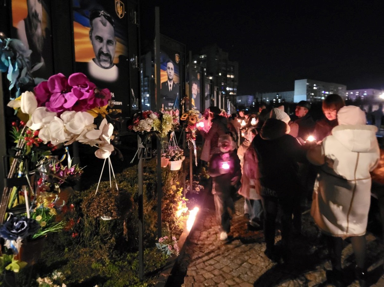 Темними вулицями міста просувалися вогники в напрямку Меморіального комплексу Захисників України. Попереду ішли пластуни і співали патріотичні пісні. На Алеї пам’яті діти й дорослі від своїх свічок запалювали лампадки біля кожного портрет загиблому Герою. Під світлом ліхтарів вдивлялися в обличчя тих, хто ціною свого життя захищав їх.