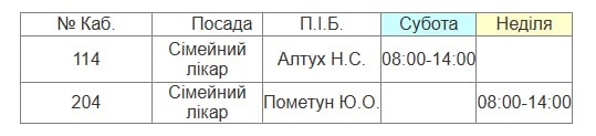 Графік роботи лікарів НКП «ПУ МЦПМСД» з 17.01.2026 - 18.01.2026