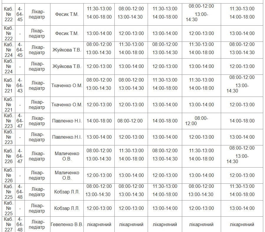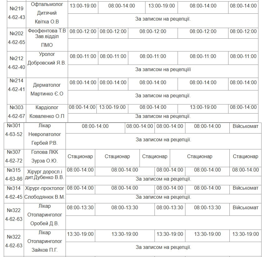 Телефони реєстратури: (067)512 42 42, (05136) 5 58 88, (05136) 4 64 30