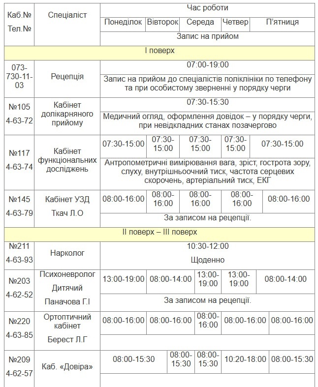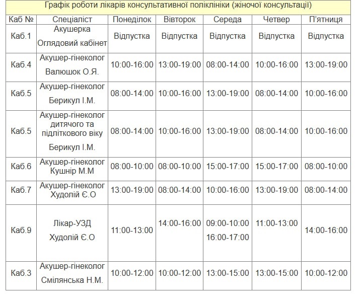Графік роботи консультативної полікілініки з 05.01.2026 - 09.01.2026