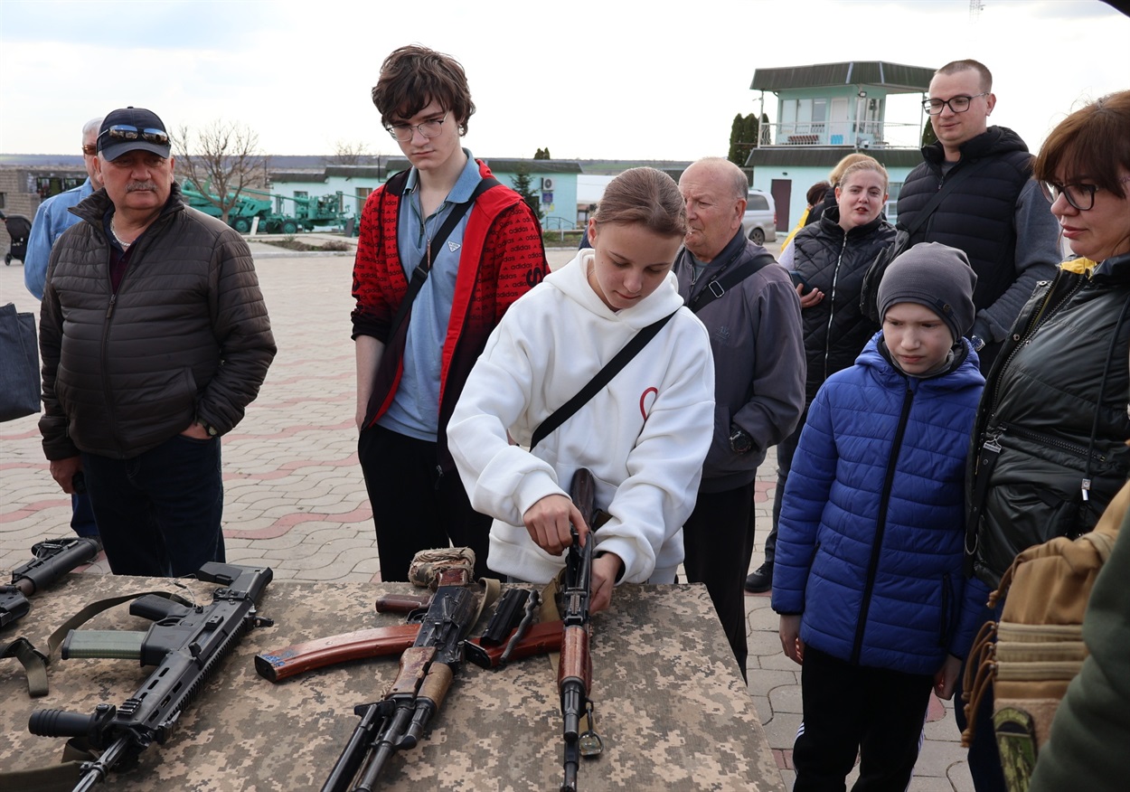 На площі розгорнули виставку озброєння, яким користуються українські військові. Серед представленого – автомати АК-74, кулемет РПК, протитанковий гранатомет РПГ-7. Також сучасні зразки: польська штурмова гвинтівка «Grot» та український протипіхотний гранатомет «Форт-600».